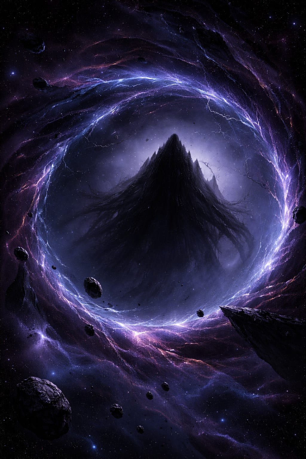 Heath didn’t seem bothered by any of this. He flew straight toward these new stars, and before I’d realized it, we were inside the portal. How to describe the experience? It was darkness of a sort, but not quite a void. All the stars, save the circle of stars in front of us, disappeared. The familiar light of the sun, which was quite faint, became sorely missed when it vanished from the window. Yet there was a light, a dark light, something blue and purple and undulating as if it were alive. It wasn’t still, steady, constant. I’d always envisioned the inside of a wormhole to be like going underwater. The sun wavers and shifts beneath the surface, making you aware of the liquid between you and it, but, this light, it was like the faint glow of a bulb, which becomes flickering and uncertain as it’s about to go out forever. Then something moved.